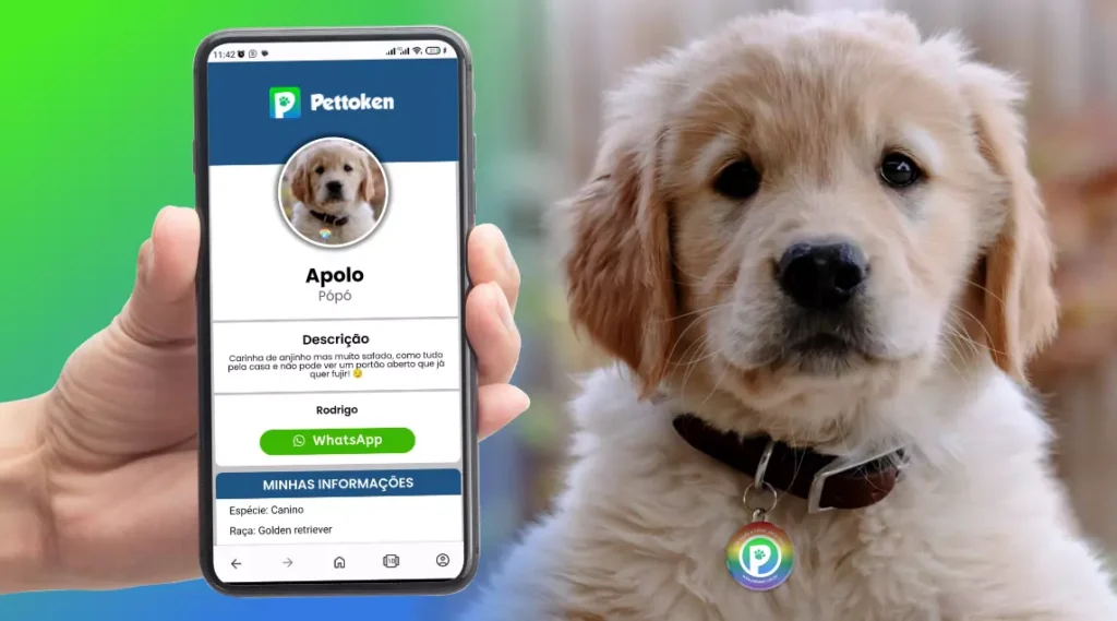 Pettoken é um Pingente de identificação Inteligente para animais de estimação, cadastre todas informações do seu pet e deixe-o protegido em caso de perca ou fuga.